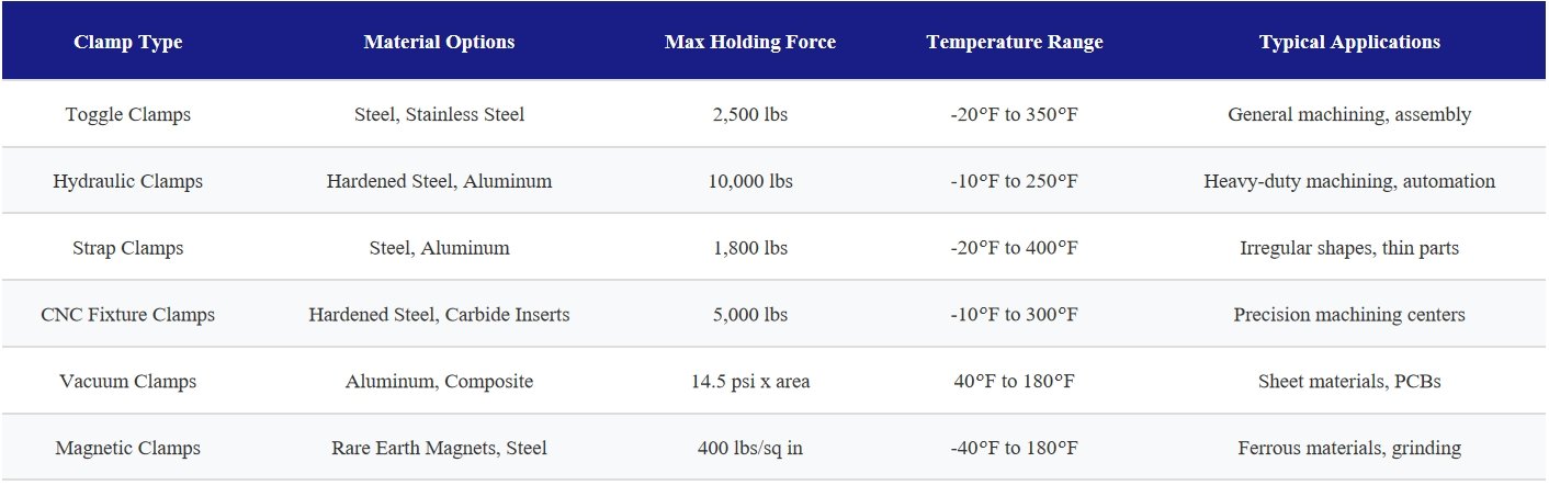 Fixture Clamp Types