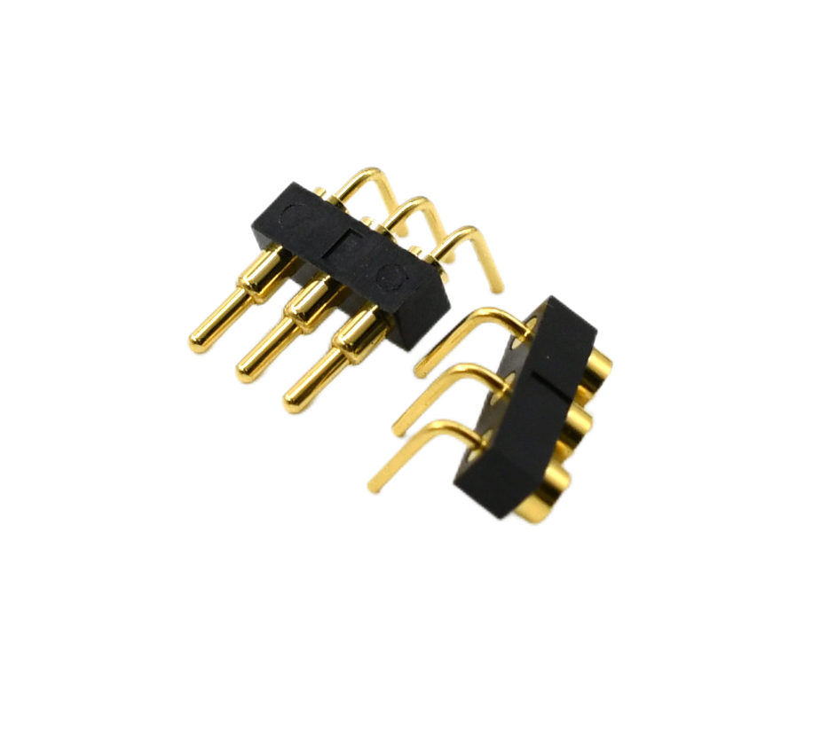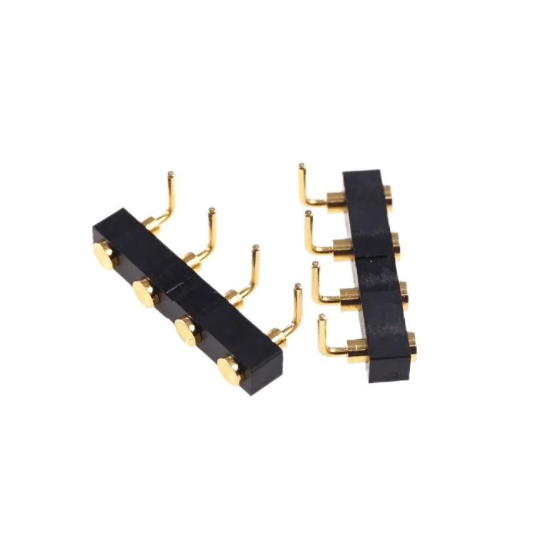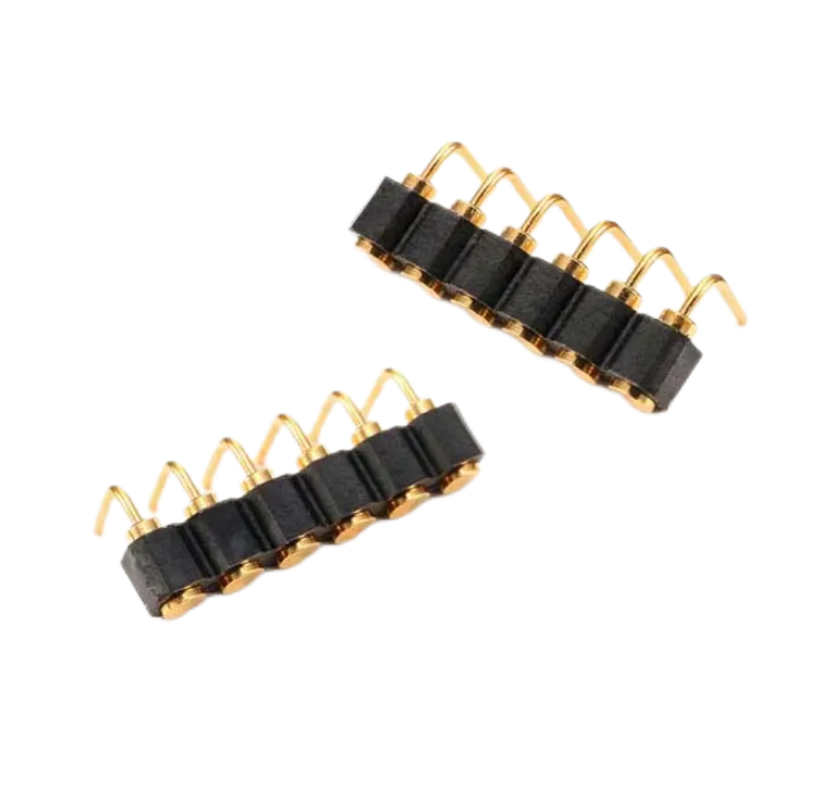 Right angle pogo pins are spring-loaded connectors with a 90° bend, designed to enable electrical connections in tight or complex PCB layouts. They are ideal for applications requiring space optimization, such as wearable devices, modular electronics, and test fixtures.