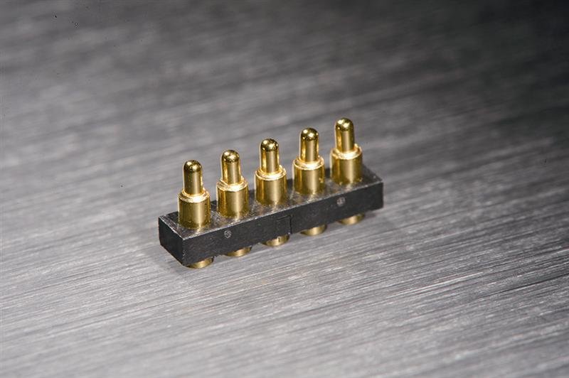 - use rugged pogo pins for spring force and travel distance