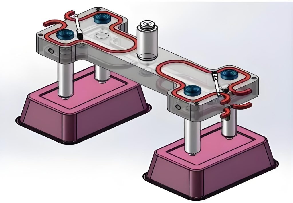 The manifold in a hot runner system acts as a central distribution hub for molten plastic. Before reaching the nozzles, the plastic flows through the manifold’s internal channels. These channels are designed according to the specific molding process that optimize the plastic flow and minimize wastage.